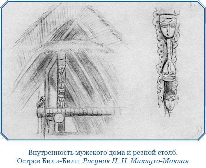 1876 г. (27 июня) —1877 г. (10 ноября) —2-е пребывание на берегу Маклая. Изучение быта папуасов береговых деревень и ближних островков. Экскурсии в горные деревни.