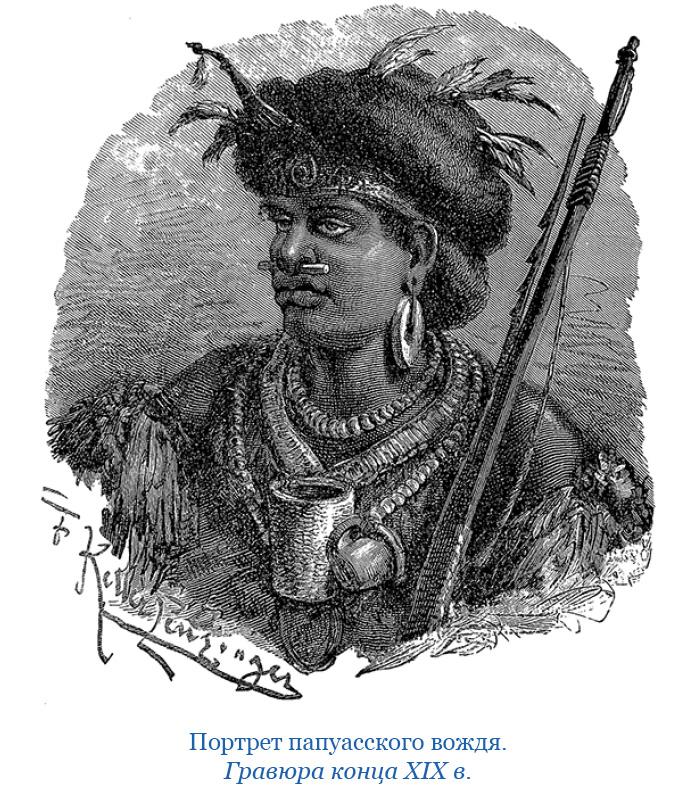 Но не в одном зоологическом отношении Новая Гвинея представляет такое большое поле для исследования. Она имеет также важное антропологическое и этнографическое значение, так как населена мало известной расой папуасов, положение которой в ряду прочих народов не выяснено.