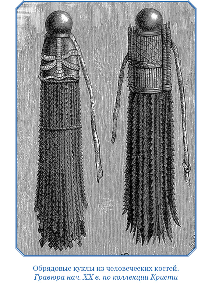 В некоторых сумочках были еще какие-то кости и зубы, а в одной – деревянный божок. Носят серьги в ушах в виде колец, сделанных из черепахи или раковины.