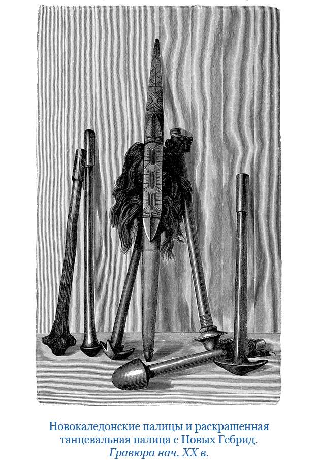 У этого туземца, как и у всех присутствовавших, верхняя часть рук была туго перевязана плетеными браслетами, за которые были заткнуты различные предметы – у кого кости, у кого листья или цветы. У многих на плече висел каменный топор, а некоторые держали в руках лук почтенных размеров (почти что в рост человека) и стрелу более метра длины.