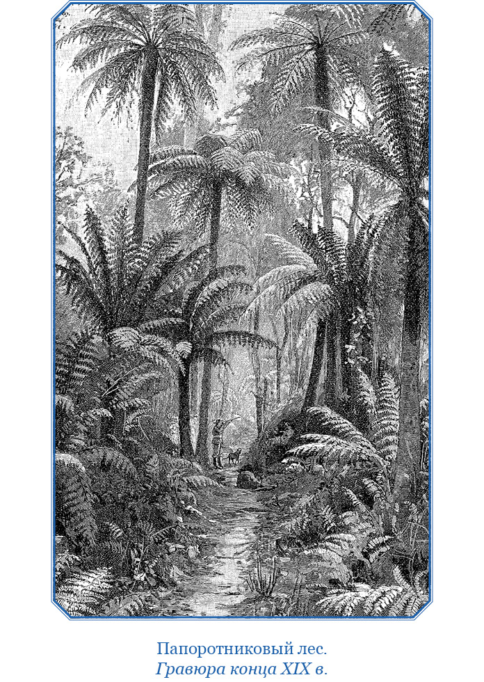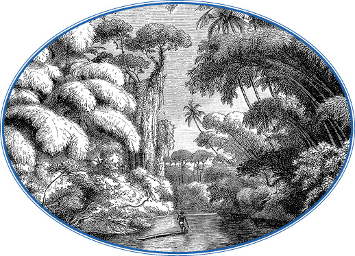 Видя такой неуспех завязать первое знакомство, я вернулся к корвету, где узнал, что видели дикарей в другом месте берега. Я немедленно отправился в указанном направлении, но и там не оказалось дикарей; только в маленькой бухточке далеко виднелись из-за стены зелени, доходившей до самой воды, концы вытащенных на берег пирог. Наконец, в одном месте берега, между деревьями, я заметил белый песок, быстро направился к этому месту, оказавшемуся очень уютным и красивым уголком; высадившись тут, я увидел узенькую тропинку, проникавшую в чащу леса.