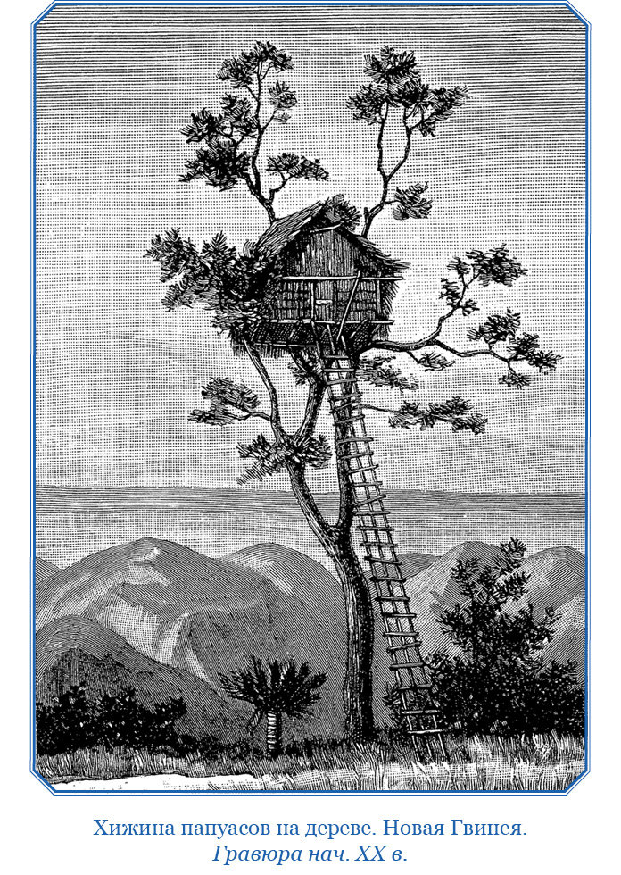 Часам к трем посланные с корвета люди занялись очисткой места от кустов и мелких деревьев, а плотники принялись за постройку хижины, начав ее с забивки свай под тенью двух громадных деревьев (Canarium commune).
