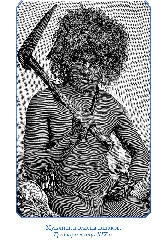 В скором времени и наш путешественник поехал туда же, выходил на берег и привез с собой на корвет четырех дикарей, которые, выйдя наверх, дрожали от страха всем телом. Наружность их сравнительно с новоирландцами миловиднее, цвет кожи почти такой же, разве немного светлее, росту небольшого, волоса короткие и курчавые; большинство их известью не красит; тоже голые, но имеют поясок приличия, сплетенный из кокосовых ниток.