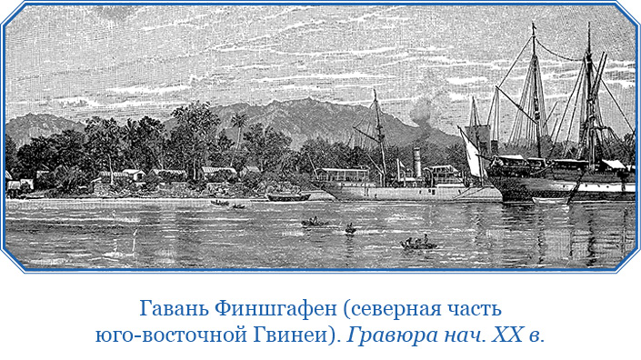 Пользуясь лунной ночью, под одними снастями, с помощью попутного течения мы шли по три узла; с рассветом дали ход машине и 8 сентября, в три часа, стали на якорь в бухте Астролябии. Эта бухта была открыта Дюмон-Дюрвилем в 30-х годах и названа именем судна, на котором он плавал.