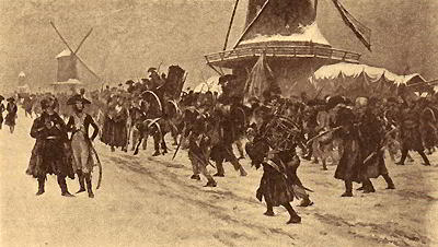Мы должны сказать еще несколько слов по поводу иллюстрационного материала, вошедшего в издание. Подбирая эти иллюстрации, редакция руководилась теми же соображениями, что и при подборе рисунков к другому юбилейному изданию, вышедшему под редакцией Исторической комиссии, к «Великой Реформе». Мы считали нужным использовать прежде всего тот богатый исторический материал, который заключается в современных памятниках быта и культуры, взять наиболее типичное для обрисовки эпох, затронутых в издании, из произведений иностранных и русских художников конца XVIII и начала XIX века, наиболее яркие, доступные для использования образцы исторической живописи уже наших дней (например, воспроизвести целиком знаменитую наполеоновскую серию картин В. В. Верещагина) и, наконец, некоторые военные реликвии нашего достопамятного прошлого. В этих целях нами использованы драгоценные коллекции Исторического музея в Москве, Артиллерийского музея в Петербурге, музея П. И. Щукина, Румянцевского музея, Императорской Публичной библиотеки и некоторые частные собрания исторических памятников и художественных картин. Использованы равным образом и некоторые заграничные альбомы, малоизвестные гравюры и т. д. Если читатель встретится со многими иллюстрациями, ему уже известными, то он найдет немало и такого, что воспроизводится в печати в первый раз.