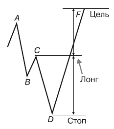 Точка № 1 – минимум цены, предшествующий точке № 2 (вершине). Точка № 3 должна быть ниже точки № 1 (рис. 110).