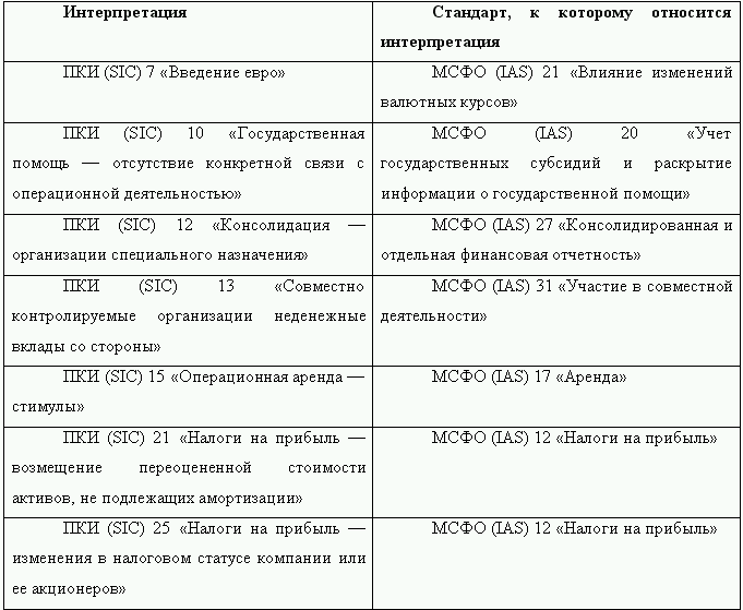 С декабря 2005 года введено в действие 7 интерпретаций, которым присвоили номера с IFRIC 4 до IFRIC 10.