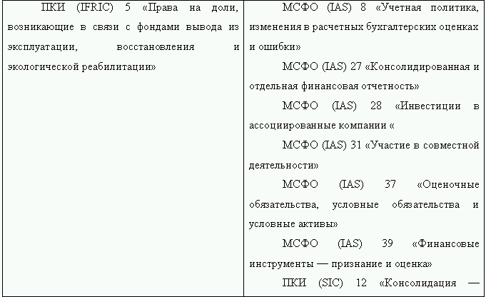 IFRIC 5 «Права на доли в фондах, возмещающих расходы на вывод из эксплуатации, рекультивацию и восстановление окружающей среды»;