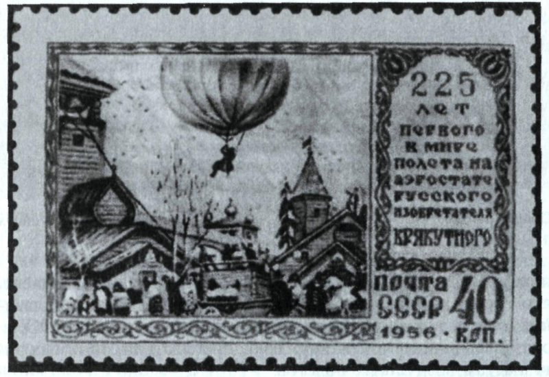 Тетрадь Сулакадзева «О воздушном летании в России» стала использоваться как вполне авторитетное первое справочное пособие по истории отечественного воздухоплавания. Долгое время не вызывало никаких сомнений и приведенное здесь известие о полете Крякутного. Его имя вошло в одно из изданий Большой Советской Энциклопедии; в пору борьбы с «космополитизмом» он стал национальным героем, утвердившим отечественный приоритет в воздухоплавании. 225-летнему юбилею «полета» Крякутного была посвящена специальная почтовая марка, в Нерехте у памятника подьячему принимали в пионеры. В работе историка русской науки и техники Б. Н. Воробьева сообщение тетради Сулакадзева уже дополнялось новыми драматическими подробностями атеистической направленности. «Необходимо, — писал он, — разыскать… документ из истории русского воздухоплавания, хранившийся до 1935–1936 гг. в одной из церквей города Пронска (Рязанской области). В этой церкви хранилась особенная книга, относящаяся к XVIII в. По ней в известные дни провозглашалась "анафема" (проклятие) согрешившим чем-либо против религии. В данной книге в числе подлежавших анафеме значился и подьячий Крякутной, совершивший "греховную" попытку летать».[405]