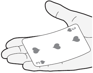 Прием «спрятанная в ладони карта» относится к тем манипуляциям, которые с первого раза кажутся очень сложными для исполнения. Тем не менее вы увидите, что тренировка очень быстро дает свои плоды, — и скоро вы сможете прятать карту достаточно уверенно.