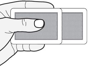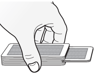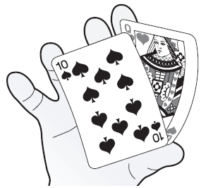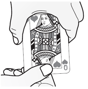 Демонстрация верхней карты (а на самом деле двух карт). Указательный палец нажимает на карты, сгибая их и совмещая друг с другом