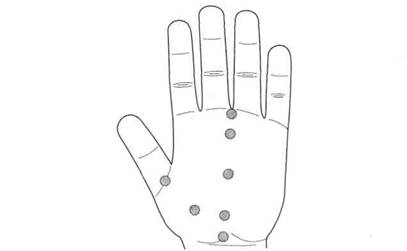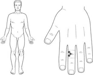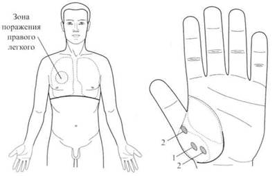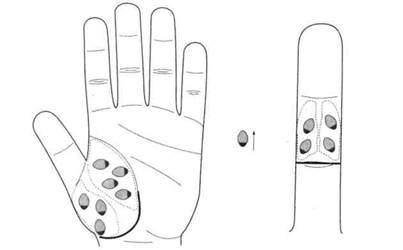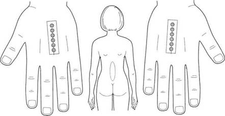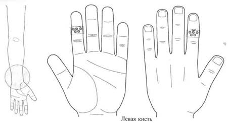 По стандартной системе соответствия кисти были поставлены семена черного перца (рис. 125), которые ежедневно менялись. Через три дня болезненность в поясничной области прошла полностью.