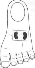 Поставлены семена фасоли черного цвета на зоны соответствия почкам в стандартной системе соответствия стопы (рис. 127). К вечеру ощущение тяжести и дискомфорта в поясничной области прошло. Семена фасоли черного цвета пациентка продолжала прикладывать к зонам соответствия почкам в течение семи дней, отмечая ежедневно улучшение своего состояния.