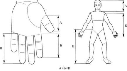 Рис. 6. Подобие кисти телу по пропорциям размеров выступающих частей