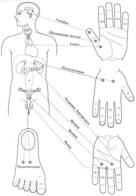 Рис.23. Расположение мини-систем соответствия телу на дистальных фалангах пальцев кистей и стоп