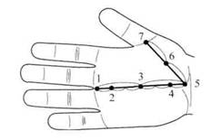 Рис. 15. Нижняя линия диафрагмы на кисти и стопе