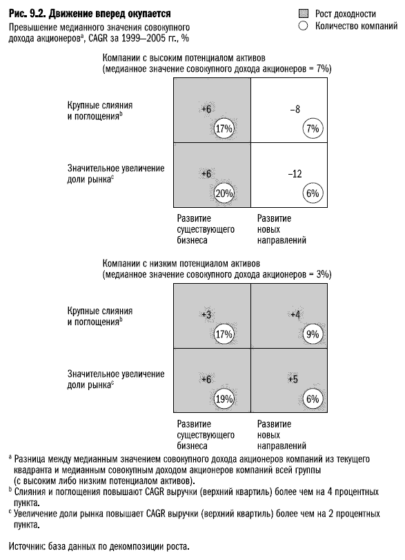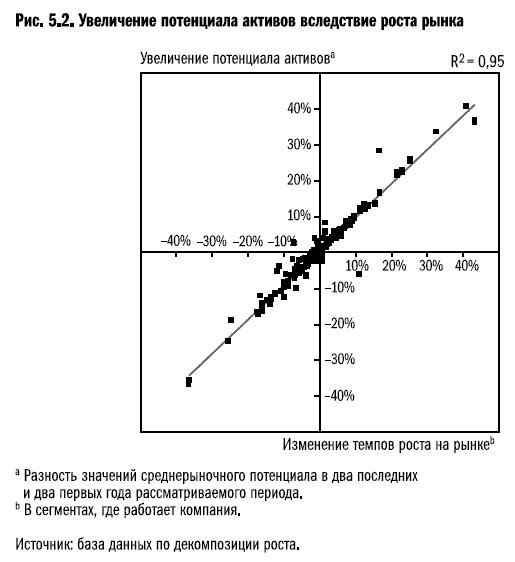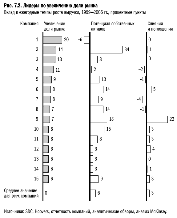 В этой книге мы покажем, что позиции компании определяются множеством составляющих, включая как темпы роста в подсегментах и группах отраслей, где действует компания, так и выручку, получаемую в результате слияний и поглощений. Мы постараемся объяснить, что темпы роста компании гораздо больше зависят от указанных факторов, чем от увеличения доли рынка.