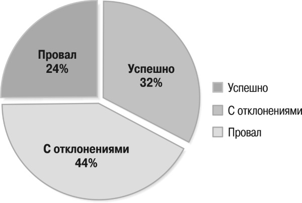 • 32 % проектов завершились успешно;