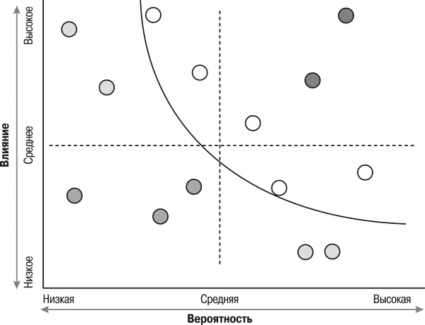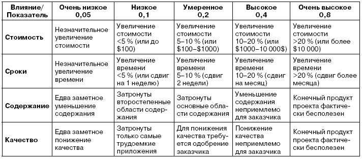 Говоря о риске, мы имеем в виду некоторое негативное событие, которое может повлиять на успешное выполнение нашего проекта. Зачастую позитивная составляющая риска отбрасывается, и тогда рассмотрению и управлению подвергается оставшаяся часть. Мы не уверены заранее в том, что это событие произойдет, но твердо знаем, что его возникновение скажется на стоимости, сроках или качестве проекта, то есть снизятся качество управления и надежность проекта. Однако принятие риска может принести проекту определенную выгоду. Например, решение об ускорении темпа выполнения работ по проекту довольно рискованно, но в случае успеха сроки реализации проекта будут существенно сокращены.