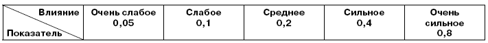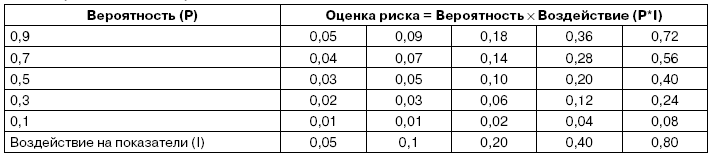 1. В полученном списке идентифицированных рисков добавьте колонку «Влияния» и проставьте в ней оценки степени воздействия риска на проект, используя приведенную шкалу.