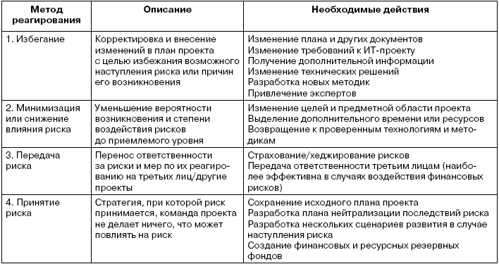 Единственного правильного алгоритма управления рисками при информатизации бизнеса и реализации программных проектов просто не существует. Однако проектный характер разработки ПО, а также необходимость управления рисками в связи с высокой степенью уникальности и неопределенности программных проектов обусловили развитие специализированных методов управления рисками, которые описаны в учебном пособии.