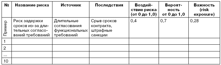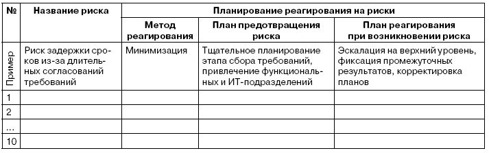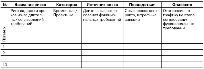учитывать риски, связанные с организационной составляющей проекта (согласование документов, обучение пользователей и т. п.), а не только технологические.
