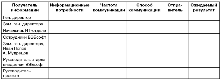 3. Разработайте план управления коммуникаций на основе следующих данных: