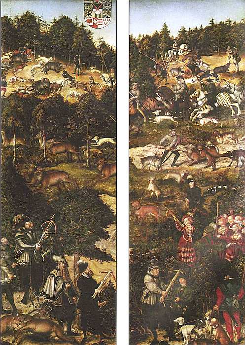 Немецкий живописец и график эпохи Возрождения, Кранах, получив в 1505 место придворного живописца при дворе Саксонского курфюста Фридриха Мудрого в Виттенберге, несколько лет придворной службы занимался преимущественно гравюрами. Он стал одним из первых европейских граверов, начавших создавать цветные оттиски. Вместе с полагающимися привилегиями художник получил и целый ряд обязанностей, он должен был сопровождать правителя на охоте, участвовать в турнирах и празднествах.