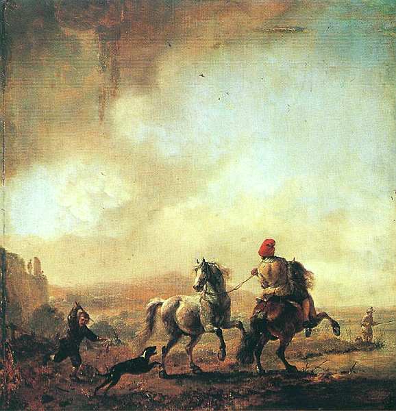 Филипс Пауверс Вауверман. Лошадь, испуганная, собакой. 1650