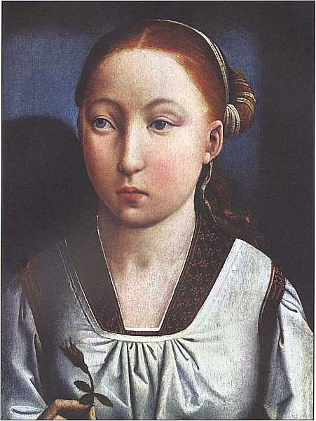 Кисти мастера принадлежит и этот прелестный погрудный портрет юной испанской принцессы, возможно, Каталины Арагонской. Нераскрывшийся бутон розы в руке девушки — эмблема Тюдоров — символизирует ее чистоту. По всей вероятности, портрет написан в преддверии ее помолвки с Артуром, принцем Уэльским.