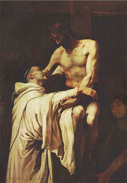 На полотне изображен основатель ордена цистерцианцев святой Бернар, который в экстазе припал к Иисусу, отстранившемуся от креста. Сюжет для картины был позаимствован художником из опубликованного в 1599 «Жизнеописания святых» П. Рибаденейра.