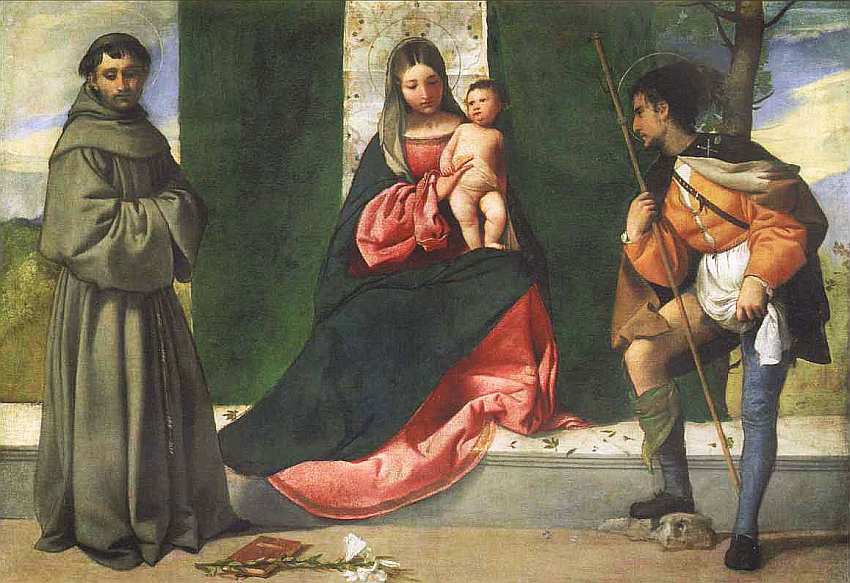 Джорджоне (1476/1477-1510) Мадонна со святыми Антонием Падуанским и Рохом 1500–1510. Холст, масло. 92x133