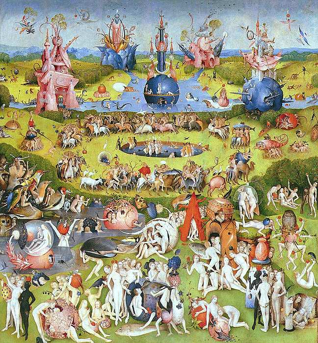 Самое известное произведение Босха поражает своей красочностью. Картина, населенная людьми и фантастическими существами, сочетает эротические, алхимические и христианские аллегории.