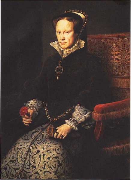 «Портрет Марии Тюдор» — самое знаменитое произведение мастера, считающееся шедевром портретной живописи. Королева Англии (вступила на престол в 1553) изображена сидящей в кресле, обитом роскошным красным бархатом. Ее поза статична, что придает картине церемониальную торжественность. Художник беспристрастно запечатлел внешний облик уже не молодой модели, стараясь выявить характер правительницы. В правой руке Мария Тюдор держит красную розу — геральдический знак своей семьи, в левой — перчатки, украшенные драгоценными камнями. Скупой колорит, точная проработка украшений, напряженная поза королевы передают невероятную твердость, силу и властность ее характера.