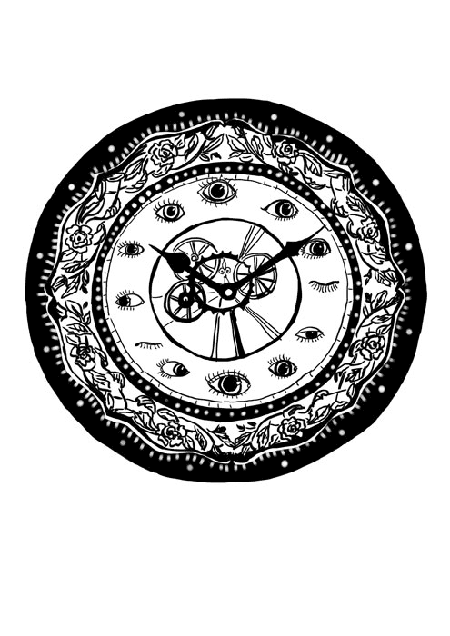 Часы, на циферблате которых вместо положенных значков во все стороны крутились самые настоящие глаза, остановились. Большая стрелка дзинькнула на одном из них, и тот тут же закрылся.