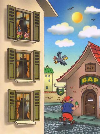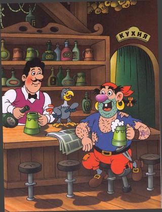 Зря попугай Жако, маскируясь под ворона, облетал один бар за другим. Пират "рваная майка" в них не объявлялся, и про Фунтика никто из тамошних не слыхал.