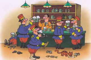 — А ты, штатская крыса, что здесь делаешь?! Ах, ты агент, тогда пей!