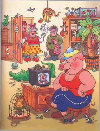 — Дядюшка, — завопил поросёнок, — перед нами законченный негодяй!