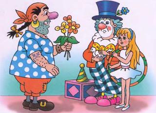 Неожиданно за кулисы по-свойски заглянул знакомый пират. Он был с цветами, но без деревянной ноги.