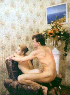 Когда оба молодых стоят прямо, опираясь друг на друга или опираясь о стену или колонну, – это «наслаждение стоя». когда, охватив петлёй рук шею опирающегося о стену, сидя в гнезде его рук и обвив петлёй бёдер нижнюю часть его тела, она раскачивается, упираясь ногами в стену, – это «висящее наслаждение».