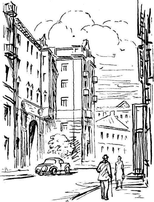 Утро. Уходят домохозяйки на рынок, спешат на работу жильцы. Усатый дворник Ф и л и н подгребает к снеготаялке черный апрельский снег. Полная женщина моет окно на третьем этаже, высунулось в форточку заспанное лицо инженера Л о с н и ц к о г о.