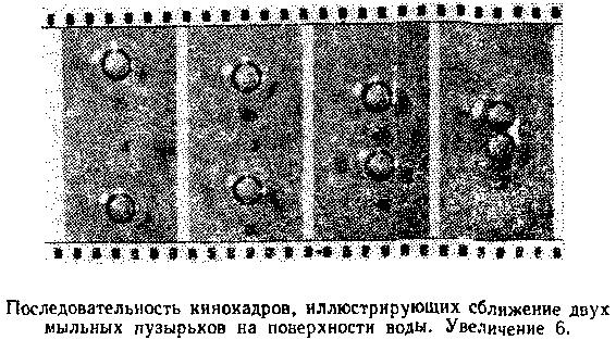 Разобщенные пузырьки без нашего вмешательства вначале очень медленно, а затем, ускоряясь, будут двигаться навстречу друг другу, пока не столкнутся. Столкнувшись, они соприкоснутся не в точке, а как бы вдавятся один в другой. Это хорошо видно на рисунке на с. 15.