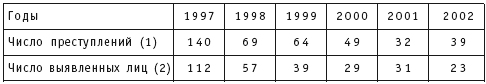 По данным Минздрава России, на учете в наркологических учреждениях состоит около полумиллиона наркоманов, в 2001 г. темп их прироста составил 15 %. За преступления, связанные с наркотиками, в 2001 г. привлечено к уголовной ответственности около 134 тыс. человек (из них несовершеннолетних – 5607 человек, женщин – 23 400 человек). В том же году из числа потребителей к уголовной и административной ответственности привлечено свыше 174 тыс. человек. Преступления, связанные с незаконным оборотом наркотиков, ежегодно составляют 240–250 тыс.