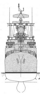 Схема наружного вида ПКР пр. 1123 после вступления в строй (вид с правого борта):
