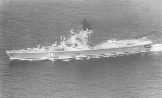 Противолодочный крейсер Москва во время последней боевой службы в 1991 г.
