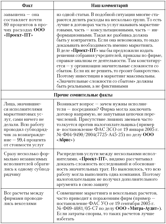 Реальность получения нефти также осталась недоказанной. Контролируя поставщика углеводородов (ООО «Стройтрейд»), инспекторы выяснили, что в компании числится только директор, работающий учителем рисования в местной школе. Естественно, ни налоговики, ни судьи не поверили, что он возглавляет крупное предприятие. Защититься от такого обвинения сложно, но можно (табл. 2).