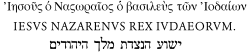 »Sie bedeuten alle dasselbe«, sagte er. »Ich nehme an, ihr erratet es bereits: ›Jesus von Nazareth, König der Juden.‹ Wir haben hier den titulus, das hölzerne Schild vor uns, das ganz oben am Kreuz angenagelt war.«