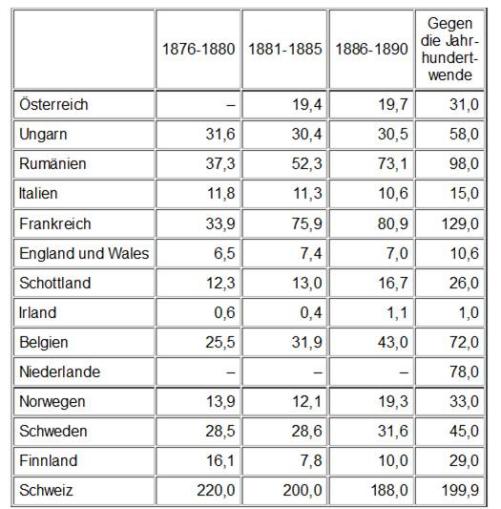 Die Mehrzahl der übrigen Staaten Europas zeigt uns ein ähnliches Bild. So kamen auf 1.000 Einwohner Geburten in:
