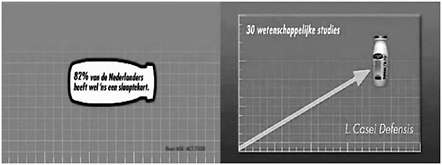 In deze Actimel-reclame stellen de makers dat 82 % van de Nederlanders wel eens kampt met slaapgebrek. Na het zien van een snurkende man, koffie, een druppende kraan, huilende baby’s, een mug en een haan weet je het zeker: “Ik behoor tot die 82 % mensen met een slaapgebrek”. Er mogen dan legio oorzaken zijn, maar één ding is zeker volgens de reclamemakers: tekort aan slaap is hoe dan ook slecht voor je weerstand. Gelukkig is er Actimel en dat helpt om je weerstand te verhogen. Dat kan dankzij L. Casei Defensis, wie of wat dat ook moge zijn. Maar liefst dertig wetenschappelijke studies hebben dit aangetoond. Die studies staan keurig op de website van Actimel en ik heb ze allemaal bekeken. Ze zien er op het eerste gezicht overtuigend uit. Bij nader inzien blijkt dat Danone Vitapole bij meerdere onderzoeken is betrokken. Dit bedrijf is onderdeel van Danone. De kans is dan ook groot dat Danone Vitapole belang heeft bij positieve onderzoeksresultaten.