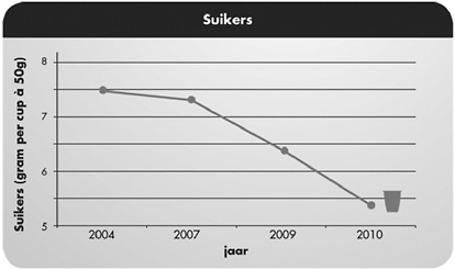 Figuur 16: Lijngrafiek die de suikerafname in een Danoontje toetje laat zien. Bron: www.danoontje.nl, november 2010